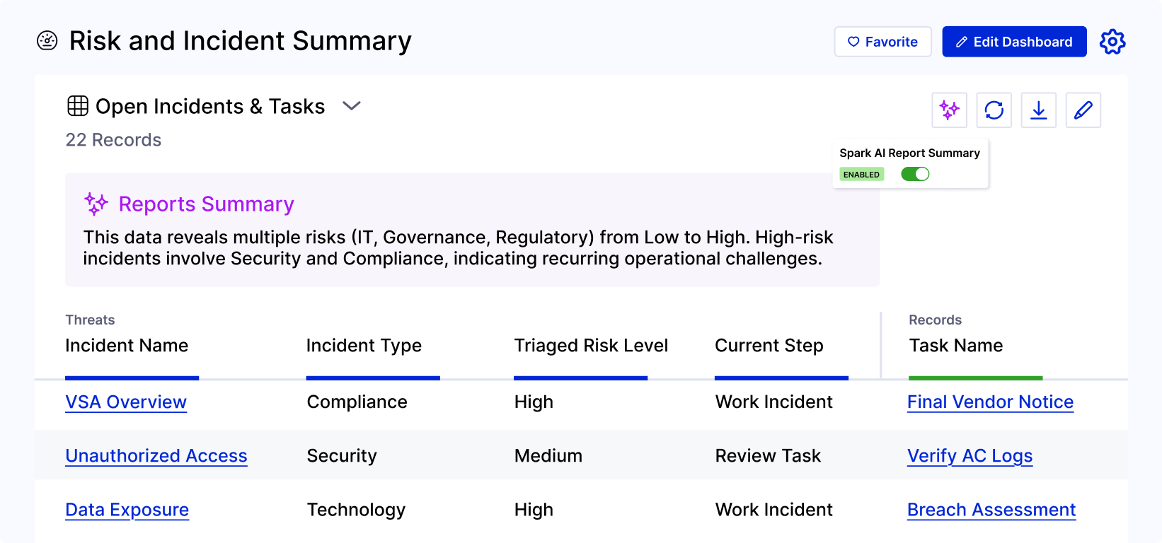 Yes, Spark AI features are entirely optional, we ensure your organization always knows when and where AI is in use. Administrators (and only administrators) can enable or disable Spark AI features within Risk Cloud via the “Admin” > “Integrations” menu at any time.