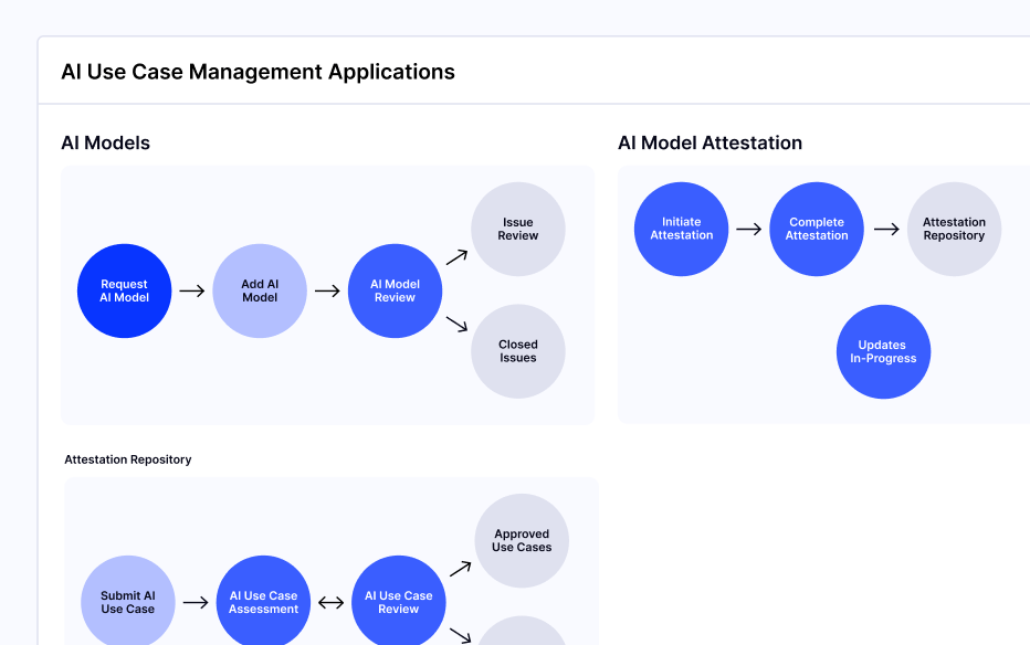 Our solution helps manage AI risks, ensure compliance, and foster responsible AI use. AI Use Case Management provides workflows from submission to approval of AI use cases easing the governance process. AI Policy Management helps standardize AI policies aligned to AI risk tolerance, but integrate them with existing Policy & Procedure Management applications. AI Risk Management integrates into your cyber risk register with assessments, monitoring, and mitigation of AI-related risks across the enterprise. Use NIST controls to stay ahead of emerging AI risks and maintain compliance with evolving regulations.