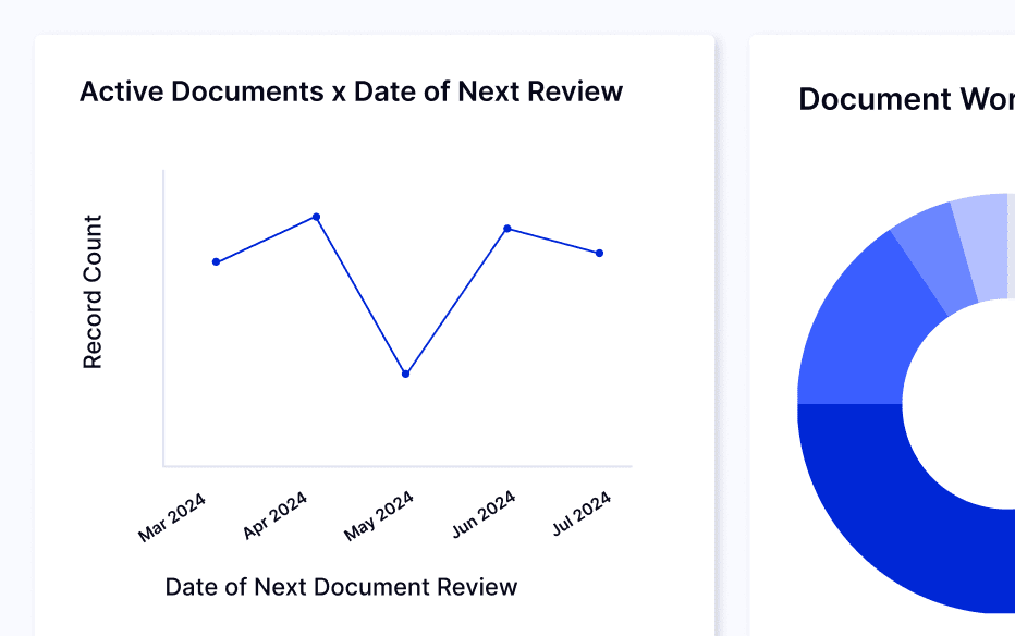 Easily gauge compliance with pre-built reports and dashboards to track active policies, acknowledgment status, and revision stages.